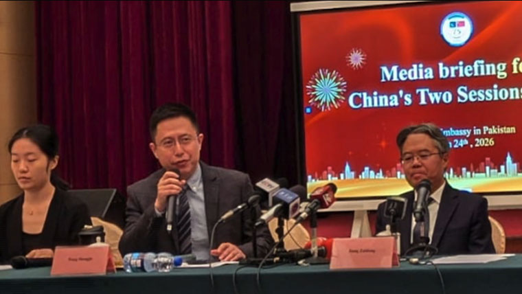 چینی سفیر جیان زیڈانگ نے پریس کانفرنس کرتے ہوئے کہا کہ مشرق وسطیٰ میں پاکستان کا ثالثی کردار قابل ستائش ہے، چین طاقت کی بجائے بات چیت کے ذریعے تنازعات کے حل کا حامی ہے، مشرق وسطیٰ کی صورتحال میں چین یک طرفہ اقدامات اور طاقت کی سیاست کے خلاف ہے۔چینی سفیر نے مزید کہا کہ چین بین الاقوامی قانون کو ملکی قانون کے تابع کرنے کی مخالفت کرتا ہے، غیر فوجی اہداف پر حملہ نہیں ہونا چاہئے اور بحری راستوں کی سلامتی میں خلل نہیں پڑنا چاہئے۔
